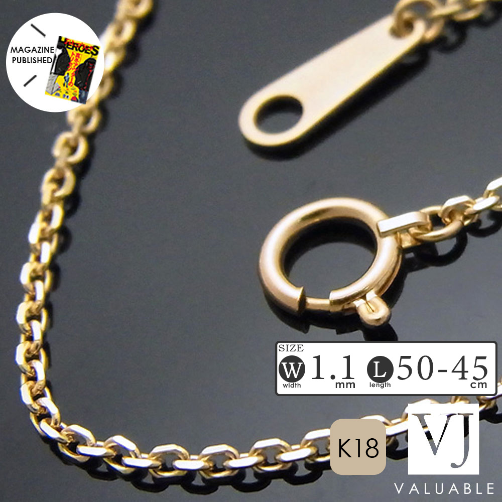 18k イエローゴールド カット アズキ チェーン 1.1mm幅 50cm(アジャスター管で45cm使用可) 18金 ネックレス 小豆 あずき [2169ca6]