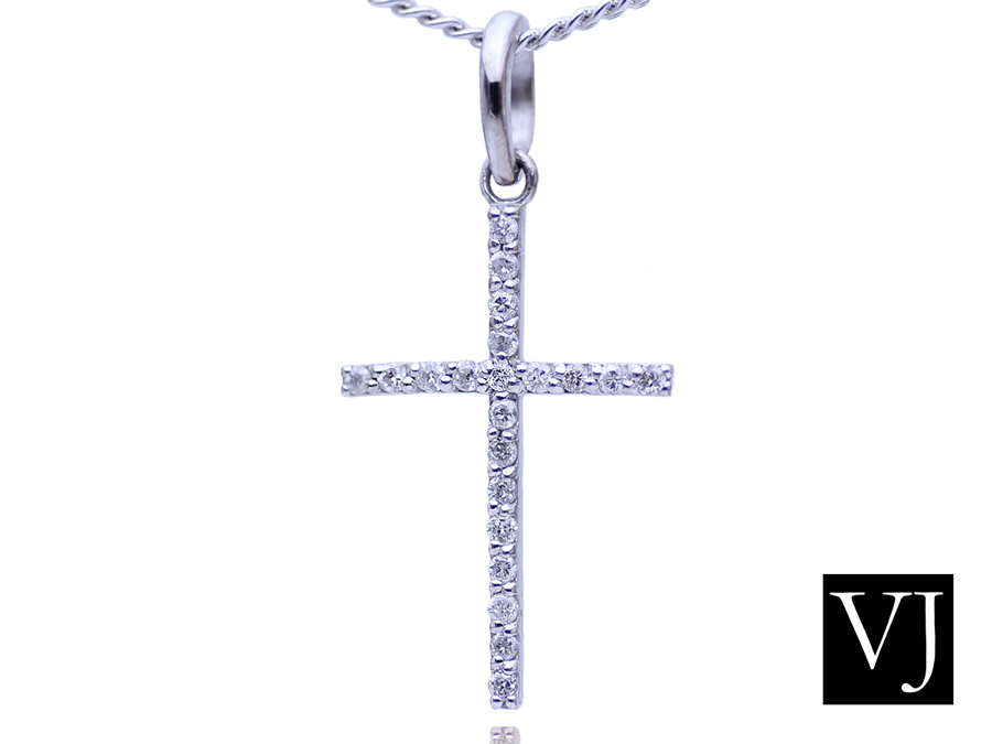 VJ 18K ホワイトゴールド “ロイヤルフラッシュ” ダイヤモンド クロス ペンダント