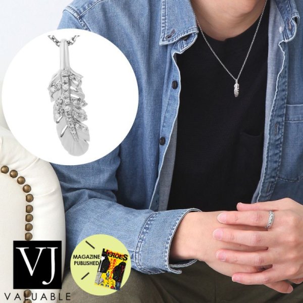 - > K18 ホワイトゴールド ダイヤモンド フェザー ペンダントチェーンセット