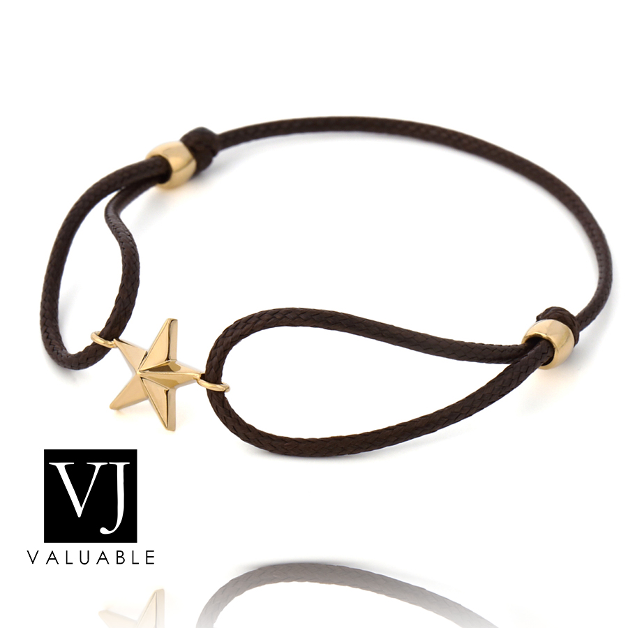 【ファッション誌に掲載】VJ【ブイジェイ】メンズ K18イエローゴールド×ブラウン スターコードブレスレット [2183vjcbygbr]