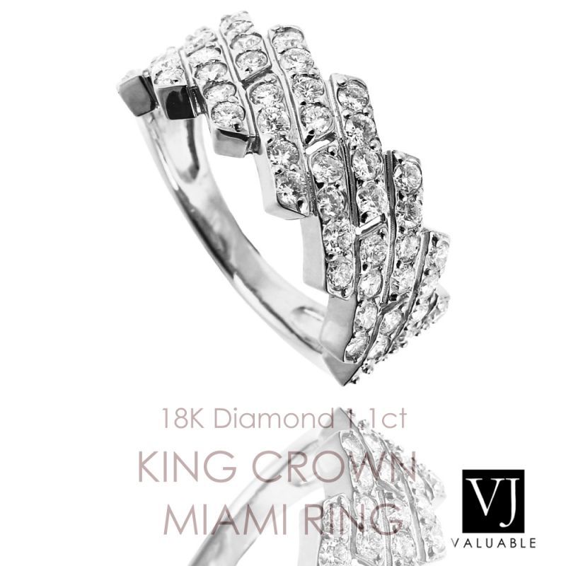 VJ【ブイジェイ】 K18 ホワイトゴールド メンズ ダイヤモンド 1.10ct キング クラウン マイアミ リング [0-99aw12kmwg-v]