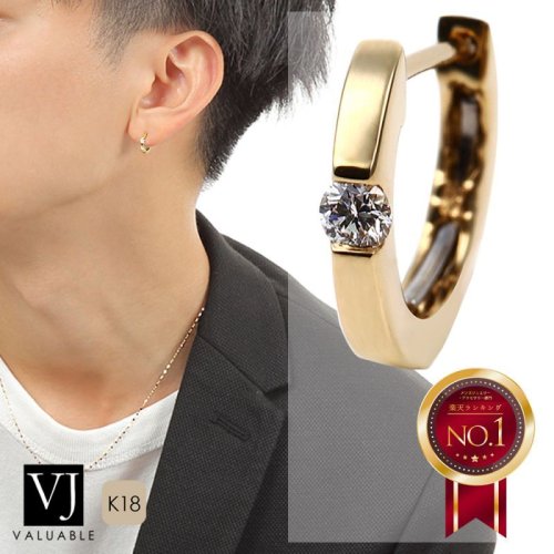 - > K18 イエローゴールド 「 ワンポイント ダイヤモンド Allure フープピアス」※1個販売(片耳)