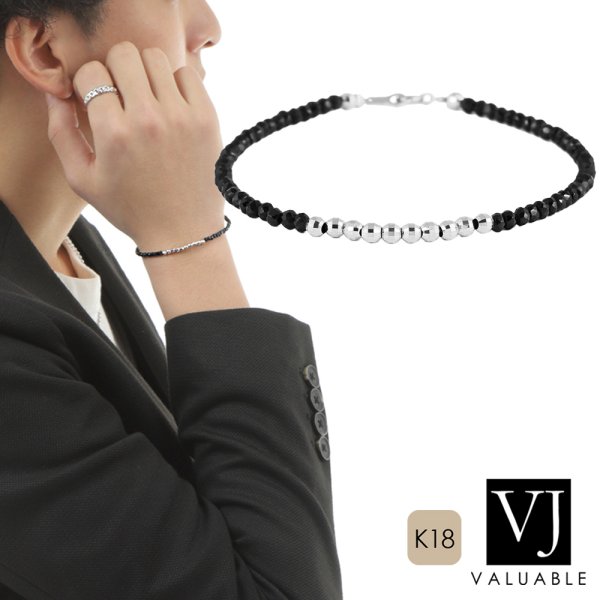 - > K18 ホワイトゴールド ブラック スピネル バスクアーレ ブレスレット