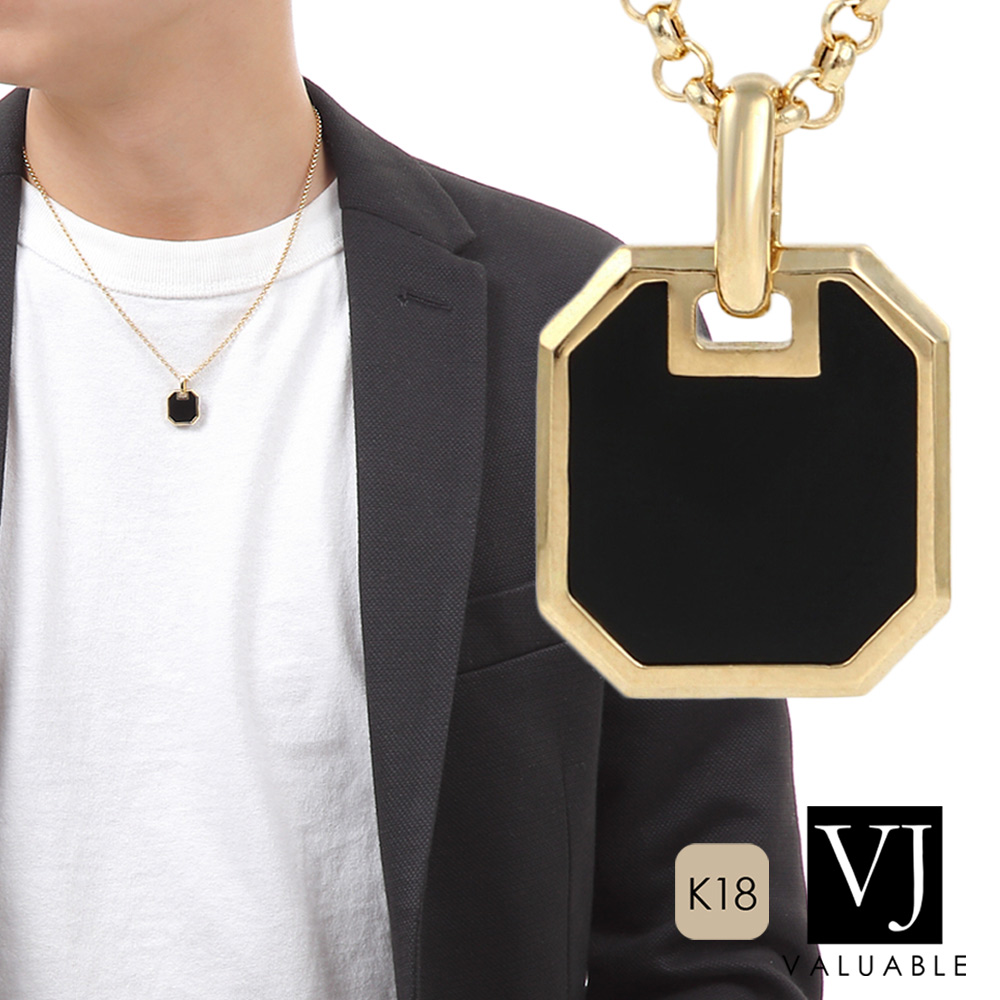 - > VJ【ブイジェイ】K18 イエローゴールド オニキス ナンバー8 ペンダント チェーンセット 18金 18K ネックレス
