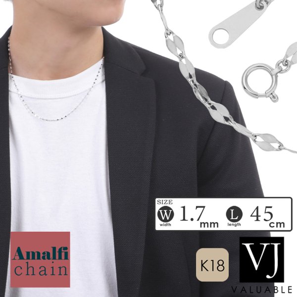 - > 18金 ホワイトゴールド 「Amalfi チェーン」ネックレス 1.8mm幅 45cm
