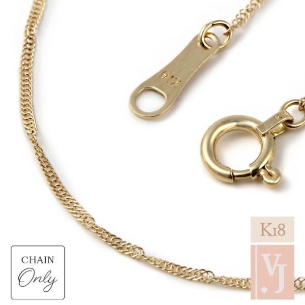 18金 イエローゴールド 「Luna スクリュー」 チェーン ネックレス 0.8mm幅 40cm (アジャスター管で37cm使用可) [2200luscc]