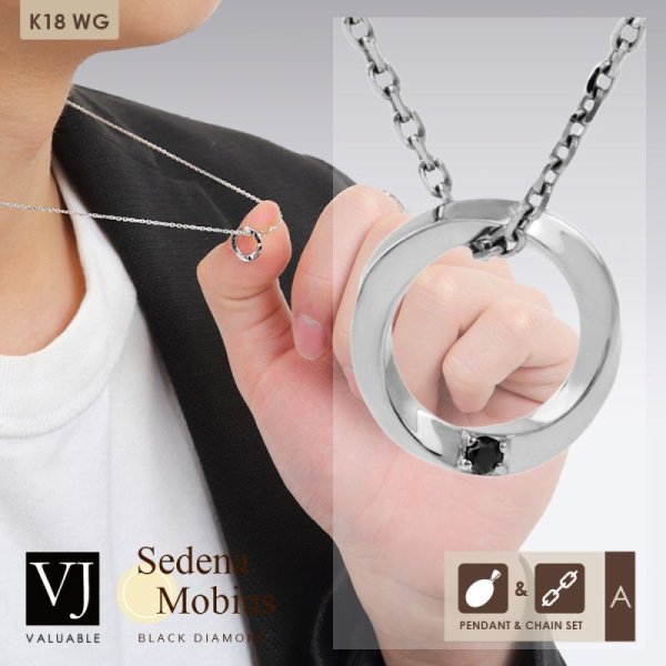 - > VJ【ブイジェイ】K18 ホワイトゴールド ブラックダイヤモンド「Sedena メビウス」 ペンダント アズキ チェーン 【Aセット】※長さ45cm.50cmからお選びできます。