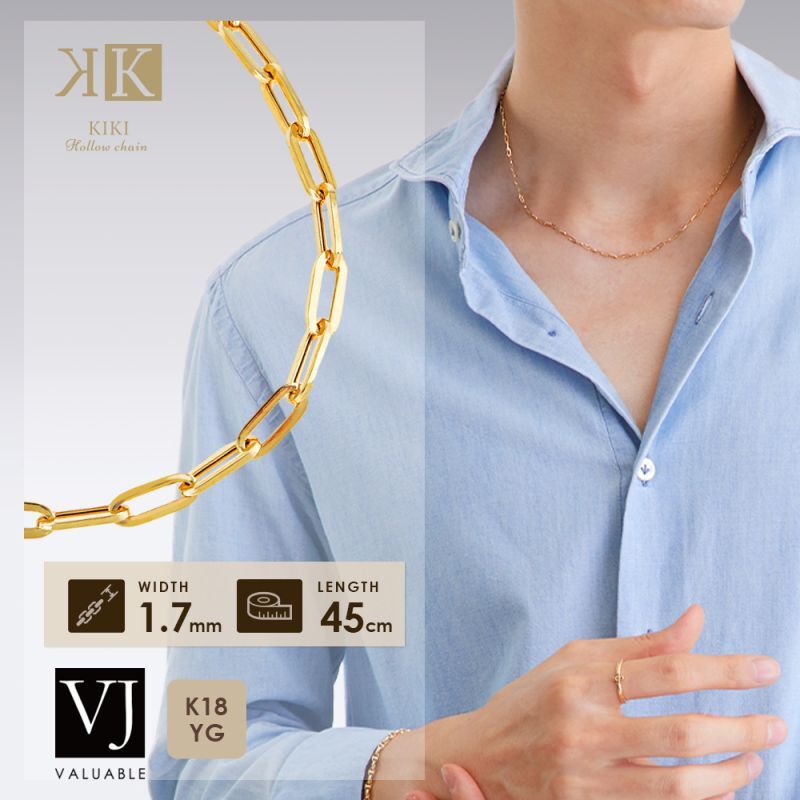 - > K18 イエローゴールド「Kiki Hollow チェーン」1.9mm 幅 45cm 18金 ネックレス 18K