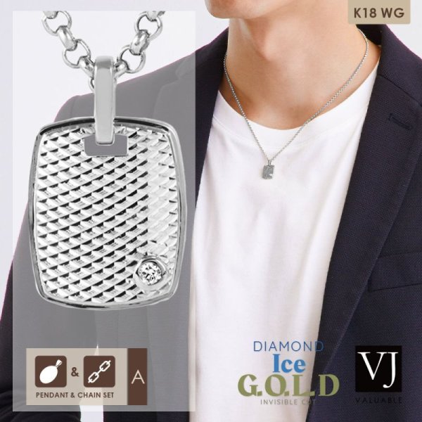 - > VJ【ブイジェイ】K18 ホワイトゴールド「ダイヤモンド Ice G.O.L.D インビジブルカット ペンダント」 ロール チェーン 【Aセット】※長さ45cm.50cmからお選びできます。