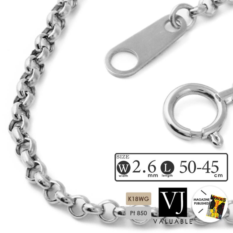 - > プラチナ / K18 ホワイトゴールド ロールチェーン(ハーフランドチェーン)2.6mm幅 50cm Pt850 18金 ネックレス