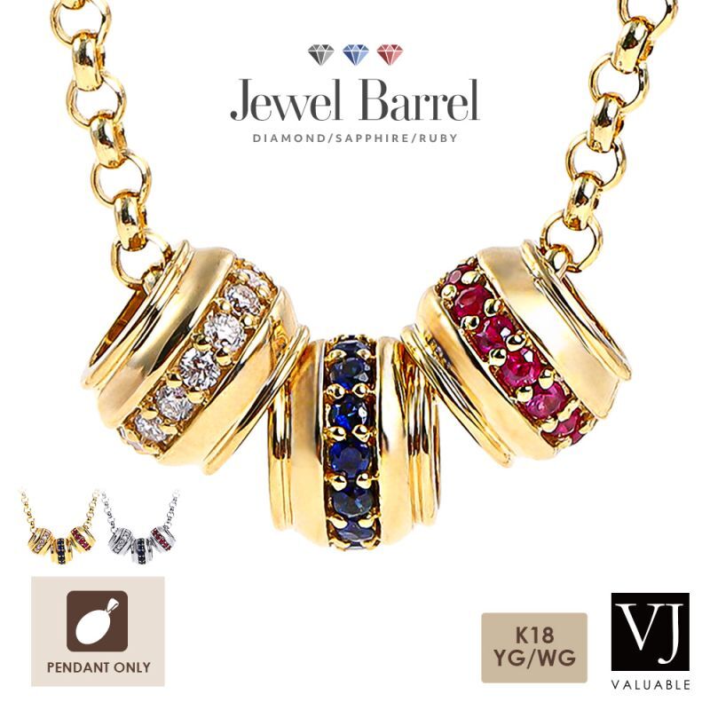 - > VJ【ブイジェイ】K18 イエローゴールド/ホワイトゴールド ダイヤモンド ルビー ブルーサファイア「トリプル ジュエル バレル」 ペンダント※ペンダントのみ 18金 ネックレス