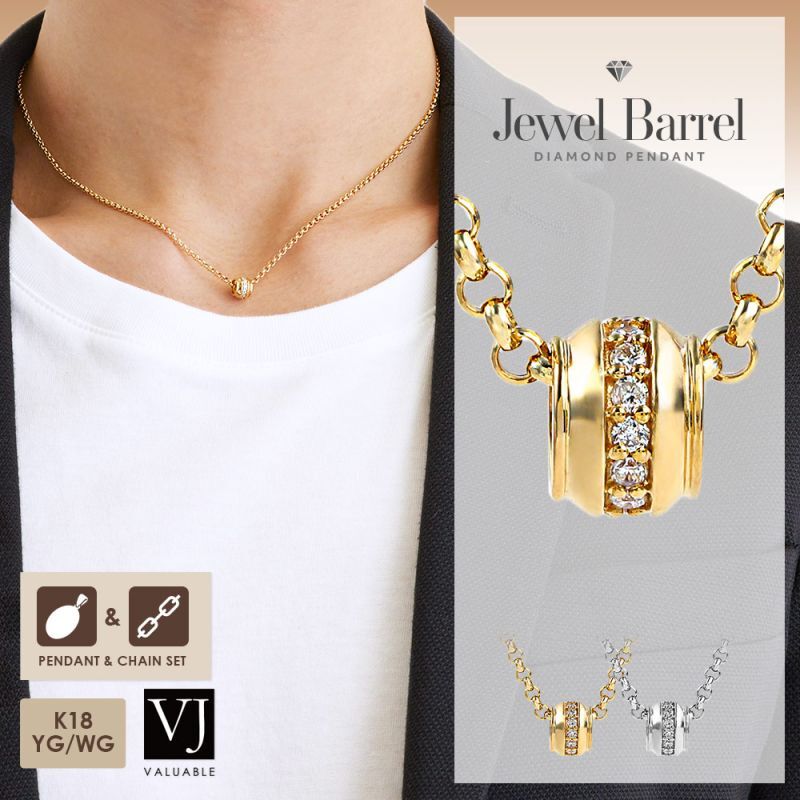 - > VJ【ブイジェイ】K18 イエローゴールド/ホワイトゴールド ダイヤモンド「ジュエル バレル」 ペンダント チェーンセット※チェーンお選びいただけます。