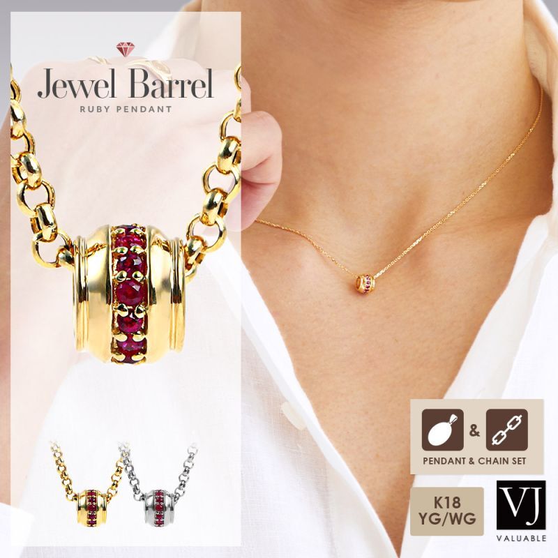 - > VJ【ブイジェイ】K18 イエローゴールド/ホワイトゴールド ルビー「ジュエル バレル」 ペンダント チェーンセット※チェーンお選びいただけます。