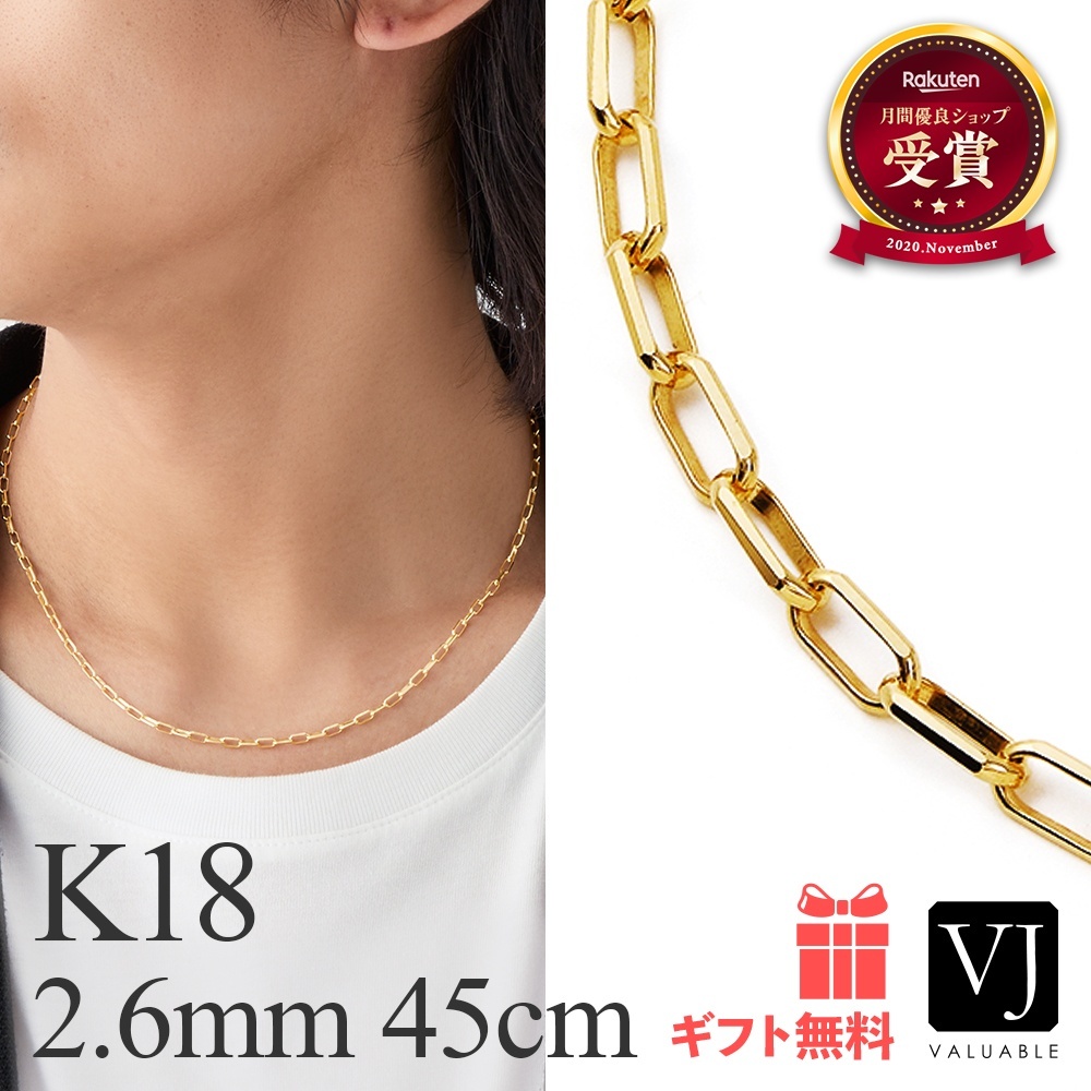 - > K18 イエローゴールド 「FABIO」 ソリッド チェーン ネックレス 2.6mm幅 45cm