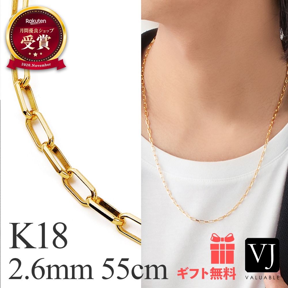 K18 イエローゴールド 「FABIO」 ソリッド チェーン ネックレス 2.6mm幅 55cm [2962r55]