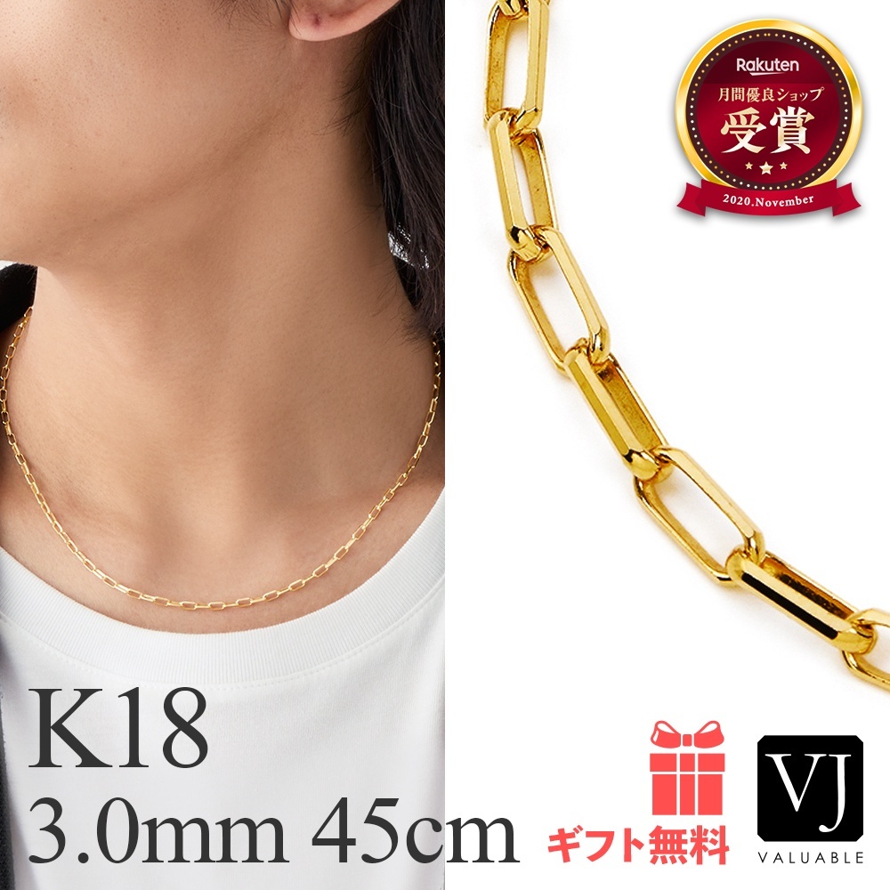 K18 イエローゴールド 「FABIO」 ソリッド チェーン ネックレス 3mm幅 45cm [2964r45]