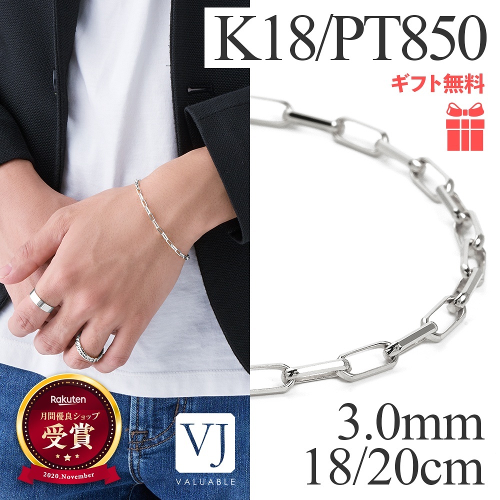 - > PT850 プラチナ 「FABIO」 ソリッド チェーン ブレスレット 3mm幅 18cm / 20cm